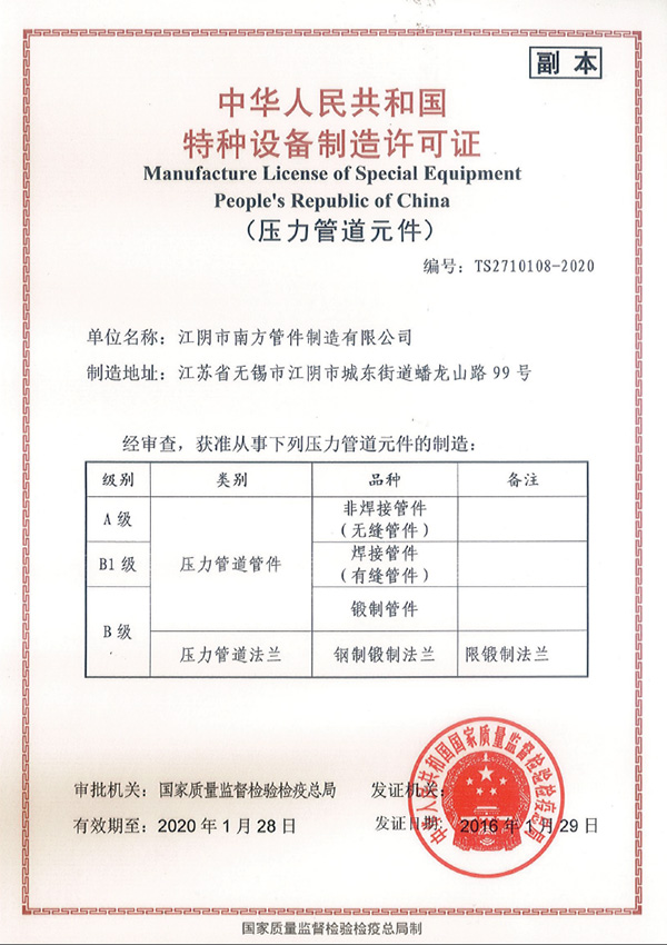 Jiangyin Nanfang Pipe Fitting Making Co., Ltd.- No.99 Panlong Mountain Road, Chengdong Street, Jiangyin City, Jiangsu Province